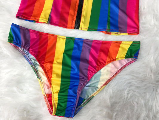 Conservative Zipper Split Swimsuit Two-piece Rainbow Stripes trendy