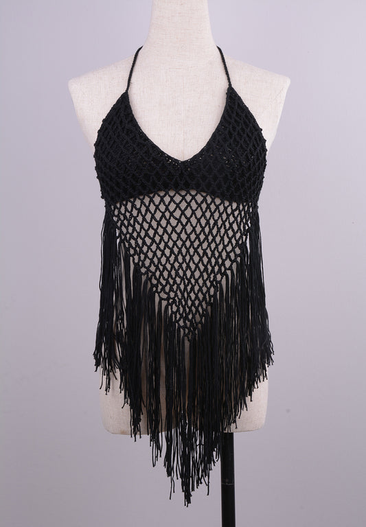 Hand-Woven Beach Hollow Tassel Split Swimsuit Set