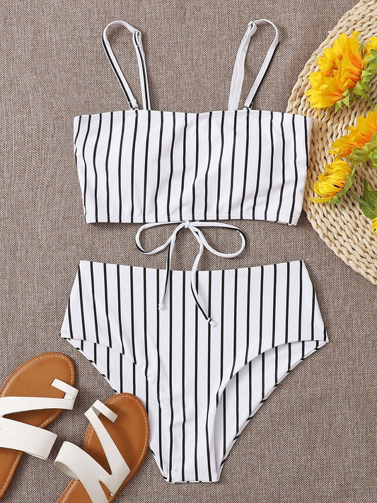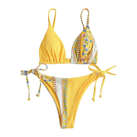 Women's Printed Bikini Split Tie High Waist Swimsuit