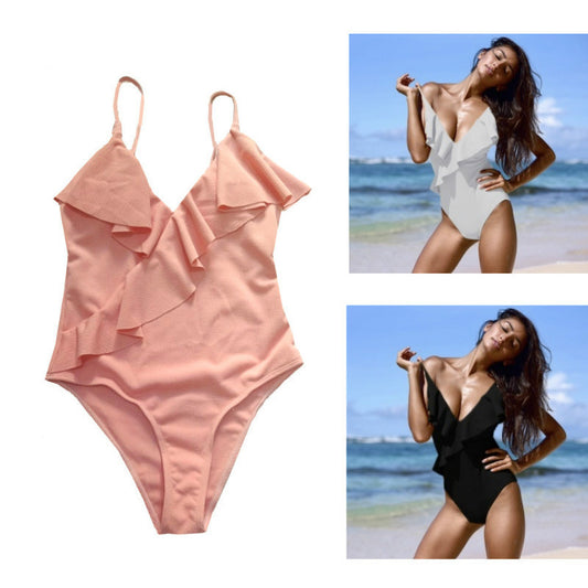 Ruffled Sling One-Piece Swimsuit Bikini – Trendy Beachwear with Flirty Ruffle Detail