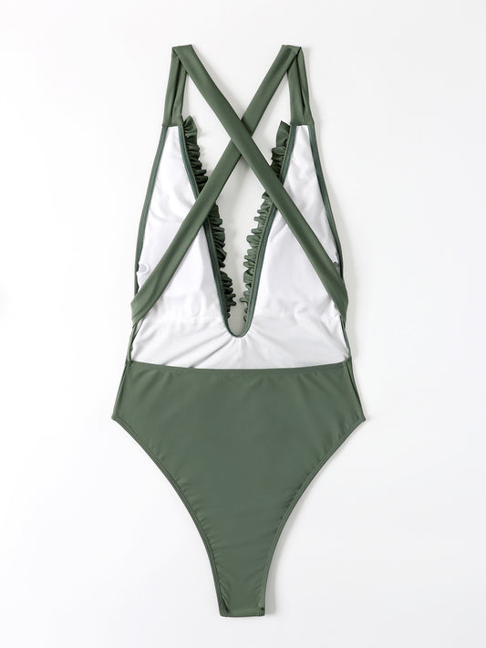 One-piece Swimsuit Polka Dot Sexy Ruffled European And American Swimsuit trendy